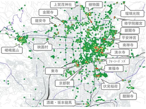 京都市内の人気撮影スポットをヒートマップにしてみた